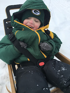 And, Santa was nice enough to leave us a note this year - he said Conner's gift was too big to fit down the chimney so he left it at the front door after it snowed. Conner got a cool new sled. Since I am dealing with my first cold (sneezing and coughing) I didn't get to play in the snow. But I got some good shots of Conner and Maggie havin fun.